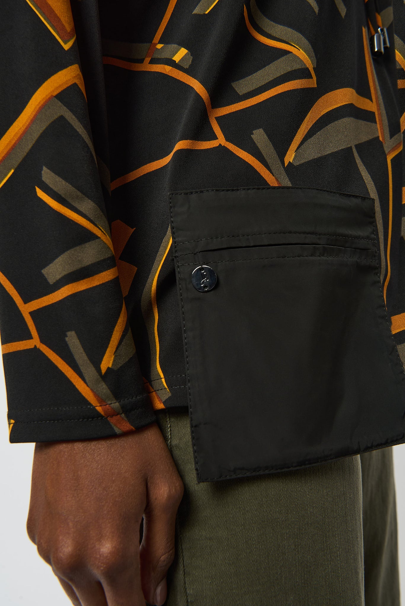 This organza blouse stands out with its artful word print and airy A-line silhouette. The mock collar, enhanced by delicate shirring, adds a sophisticated touch to the design. The chic front button closure and three-quarter sleeves with cuffs offer and structured and polished look to this contemporary piece.