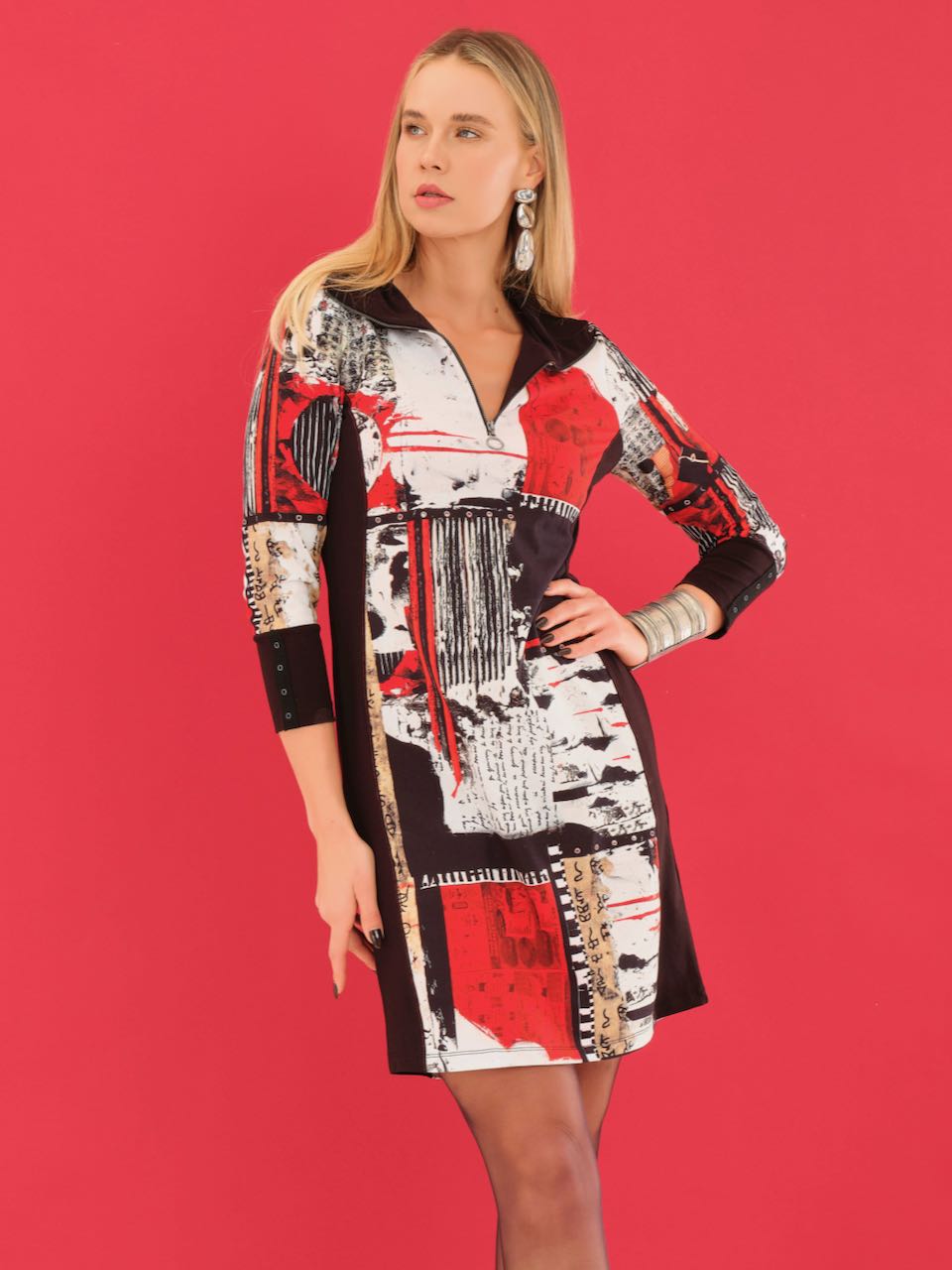 Simply Art Dress...The print “Bookworm” – multi coloured dress with four way stretch and a zipper neck. A great day or evening dress.